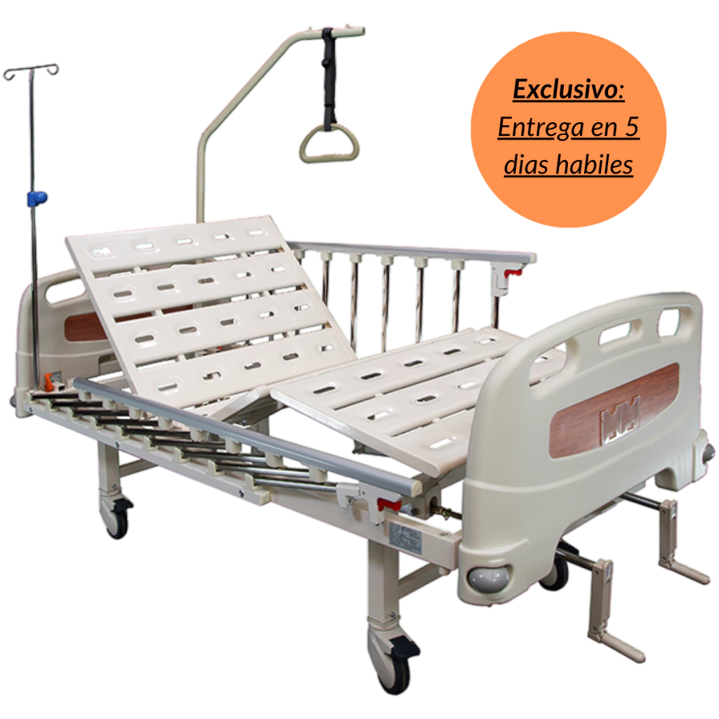 La Cama Ortopédica Manual con Ruedas, Barandas y Porta-Suero de alta calidad es ideal para la comodidad y seguridad del paciente. Diseñada con 4 planos y 3 articulaciones, es totalmente ajustable mediante manivelas telescópicas. Su estructura robusta incluye barandas plegables retráctiles y un porta-suero incorporado, proporcionando una solución completa para el cuidado del paciente. Las ruedas con frenos aseguran una movilidad y estabilidad excepcionales, mientras que el mecanismo de giro sin tope en las manivelas previene roturas.