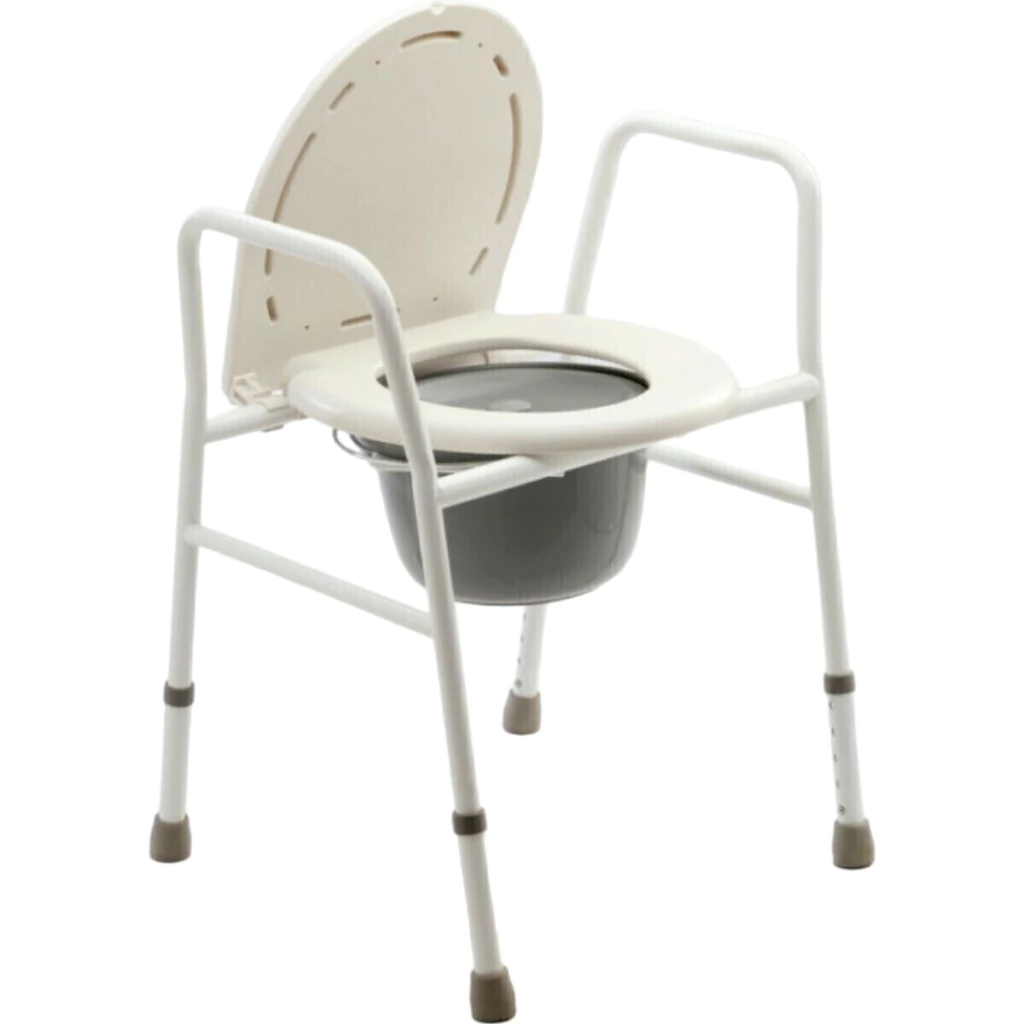 Facilita la movilidad y comodidad en el baño con nuestro Inodoro Portátil Fijo de Acero Blanco. Su estructura robusta de acero, con apoyabrazos y respaldo, brinda estabilidad y seguridad al usuario. La altura es regulable de 50 a 60 cm, adaptándose a diferentes necesidades. Además, cuenta con un asiento y tapa rebatibles y desmontables para facilitar la limpieza, y viene con una bacinilla plástica con tapa y manija.